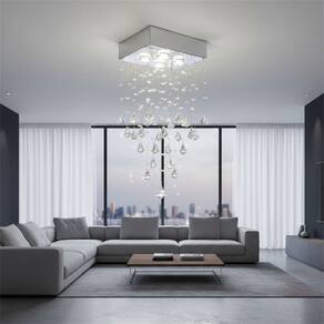 Este lustre pendente é a escolha perfeita para quem busca adicionar luxo e sofisticação à decoração. Com um design versátil e moderno, ele apresenta uma base quadrada de 20x20 cm em aço inox polido e espelhado, que reflete a luz de forma magnífica, criando um espetáculo de brilho.
