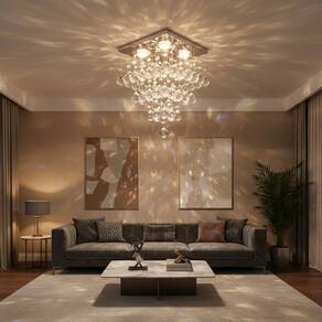 Este lustre pendente é a escolha perfeita para quem busca adicionar luxo e sofisticação à decoração. Com um design versátil e moderno, ele apresenta uma base quadrada de 30x30 cm em aço inox polido e espelhado, que reflete a luz de forma magnífica, criando um espetáculo de brilho.