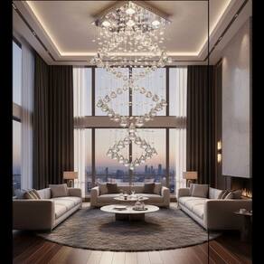 Brilho Superior: Com 49 pêndulos e aproximadamente 400 castanhas de 14 mm de cristal legítimo K9, o lustre garante um brilho intenso e elegante.