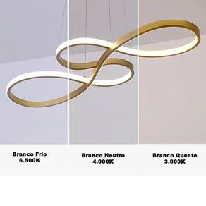 O lustre possiu três temperaturas de cor: Branco Frio, Neutro e Branco Quente. Para fazer a mudança das temperaturas de cor basta desligar e ligar o interruptor do seu próprio ambiente. Altura do lustre é regulável.