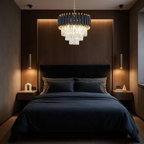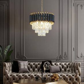 É refinado e impactante. O cristal utilizado neste pendente é uma fonte de brilho e transparência que encanta e fascina. Quando a luz incide sobre ele, cria reflexos e padrões que preenchem com uma aura de beleza e magia. Ao todo são 44 cristais divididos em 3 andares na estrutura do lustre. Além disso, o metal preto com dourado, adiciona requinte e solidez à peça.