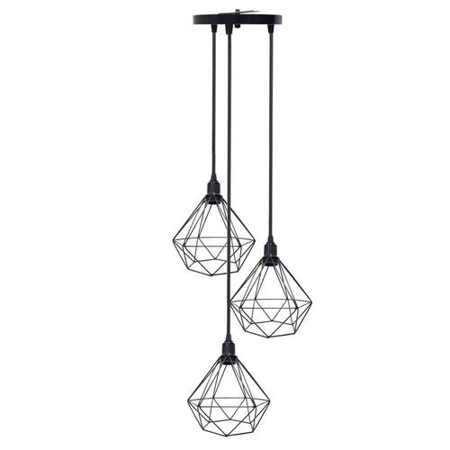 Lustre Pendente Aramado Triplo Diamante Cabo Regulável Luminária Agp Ilumini Retro - Cor: Preto
