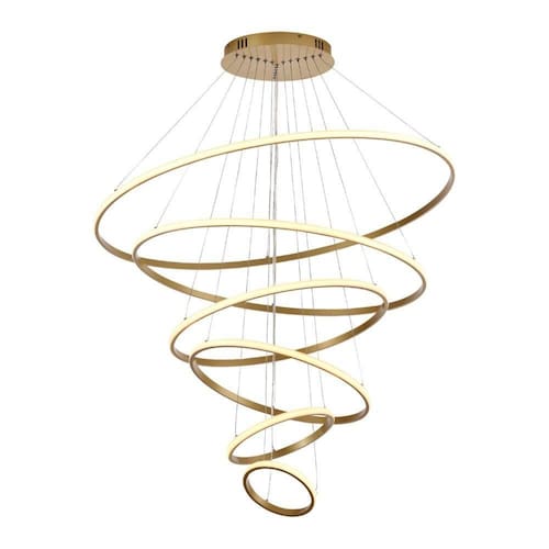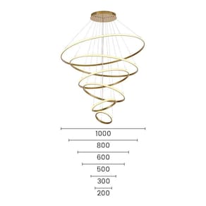 Lustre Pendente Astraled Skylight Pl-9850 Dourado Led Bivolt Dourado Pl-9850 Especificações Gerais do Produto:Voltagem: BivoltDimensões AxLxP (mm): De cima para baixo: Círculo 1: 1000mm; Círculo 2: 800mm; Círculo 3: 600mm; Círculo 4: 500mm; Círculo 5: 300mm; Círculo 6: 200mm ( Largura total do lustre 1000mm)Material: Alumínio e SiliconeGarantia: 1 ano junto ao fabricanteReferência: PL-9850Fluxo Luminoso: 17040 lúmensComprimento dos Cabos: Cabo ajustável, máximo 500 cmPotência: 213WLocal de Uso: InternoModelo/Tecnologia: LED Embutido O que vem na caixa:1 Lustre Pendente Marca: ASTRALED