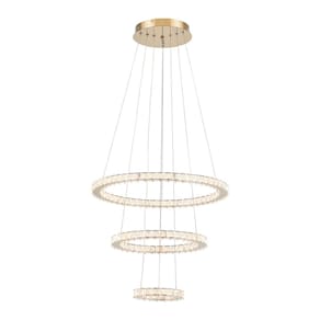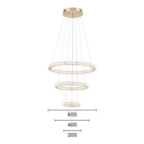 Especificações Gerais do Produto: Voltagem: Bivolt Dimensões AxLxP (mm): De cima para baixo: Círculo 1: 600mm; Círculo 2: 400mm; Círculo 3: 200mm ( Largura total do lustre 600mm) Material: Inoxidável e acrílico Garantia: 1 ano junto ao fabricante Referência: PL-9747 Fluxo Luminoso: 6080 lúmens Comprimento dos Cabos: Cabo ajustável, máximo 200 cm Potência: 76W Local de Uso: Interno Modelo/Tecnologia: LED Embutido