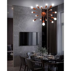 Lâmpadas não inclusas, futurista e marcante, o design da luminária Sputnik se destaca na decoração de cenários com visual urbano. Ideal para iluminar com estilo e requinte qualquer parte da casa: desde salas de estar e jantar até hall de entrada e home cinema. Produto em alumínio pintado com acabamento em verniz. Possui soquete rosca e27. Acabamento: Acompanha Cúpula: Não Acompanha Lâmpada: Não Altura: 172 Altura Regulável: Sim Ambiente de Iluminação: Ambiente Principal: Sala de Estar Complexidade da Montagem: Composição: Comprimento: 76 Comprimento do Cabo: 150 Cor: Cobre Cor do Produto: Cobre Cor Predominante: Cobre Diâmetro: 76 Direção da Luz: Escala de Brilho: Fosco Formato: Redondo Informações Complementares: Itens Inclusos: 1 Pendente Largura: 76 Linha ou Coleção: Manual de Montagem e Instalação: https://cdn2.madeiramadeira.com.br/atributo/conti-ilumina-o/871149-manual-pendente-sputnik.pdf Materiais Secundários: Material da Cúpula: Material Principal: Alumínio Medida da Canopla (A x D): 11,5cm Medida da Cúpula (A x D): Modelo/Tecnologia: Necessita Montagem: Número de Braços: 16 Origem do Produto: Nacional Peso: 2,1 Possui Braços: Sim Possui Cristal: Não Recomendações de Uso, Manutenção e Limpeza: Sistema de Montagem: Tamanho: Tipo de Cristal: Tipo de Luminária: Aramado Voltagem: Bivolt Marca: WOODS!