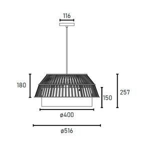 Especificações gerais do produto:Voltagem: BivoltDimensões AxLxP (mm): 257x516x516Material: Aço e fio algodãoGarantia: 1 ano junto ao fabricanteComprimento dos Cabos: Cabo ajustável, máximo 90 cmLâmpada Inclusa: NãoLocal de Uso: InternoNúmero de Lâmpadas: 1Potência Máxima (por soquete): 20WSoquete: E27Grau de Proteção: IP 20Frequência: 50/60 HzLâmpada Indicada: A60 O que acompanha o produto:1 lustre pendente