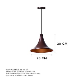 Especificações Técnicas: Marca: Ideallume Modelo: Chapéu Chinês Produto: Lustre Cor: Marrom Dimensões: 20x23cm Canopla: redonda de 11cm de diâmetro Material: Alumínio Fio: Ajustável de 150cm Soquete: E-27 utilize a lâmpada que desejar Garantia: Garantia de 6 meses contra defeitos de fabricação