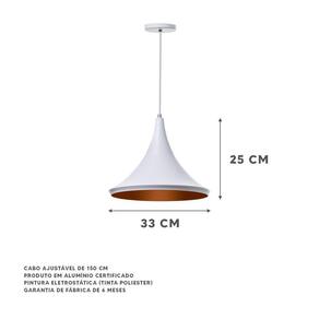 Deixe sua casa muito mais moderna e sofisticada com o Lustre Pendente Chapéu Chinês Da Ideallume. Produzido em alumínio, o produto não enferruja. O Lustre é ideal para ser utilizado em áreas externas e internas. Com esse produto você dará um toque de beleza que valoriza sua casa. Especificações Técnicas: Marca: Ideallume Modelo: Chapéu Chinês Produto: Lustre Cor: Branco Dimensões: 25x33cm Canopla: redonda de 11cm de diâmetro Material: Alumínio Fio: Ajustável de 150cm Soquete: E-27 utilize a lâmpada que desejar Garantia: Garantia de 6 meses contra defeitos de fabricação IMPORTANTE: Lâmpadas não inclusas neste produto. Conteúdo Da Embalagem: 1x Lustre Pendente Chapéu Chinês 33Cm Branco