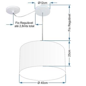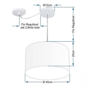 Pendente Com Desvio de Centro Indicado para decoração área interna, como mesas, sala de estar, sala de jantar, suíte, quartos, corredor, hall, mezanino, escadas, churrasqueira, lareira, área de circulação, lojas, comércios, restaurante, varanda, balcão.DimensãoCúpula em Tecido: 40x25cm
