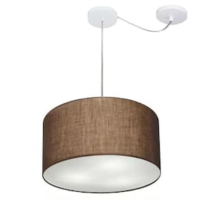 Lustre Pendente Cilíndrico Com Desvio De Centro Md-4163 Cúpula Em Tecido 40x25cm Café - Bivolt