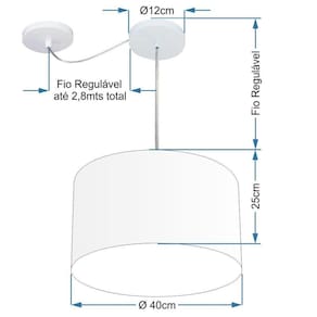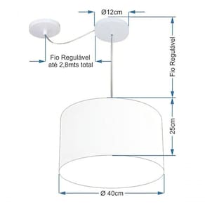 Pendente Com Desvio de Centro Indicado para decoração área interna, como mesas, sala de estar, sala de jantar, suíte, quartos, corredor, hall, mezanino, escadas, churrasqueira, lareira, área de circulação, lojas, comércios, restaurante, varanda, balcão.DimensãoCúpula em Tecido: 40x25cm