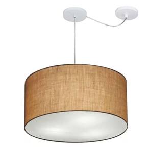 Lustre Pendente Cilíndrico Com Desvio De Centro Vivare Md-4236 Cúpula Em Tecido 45x25cm - Bivolt Palha 127/220v