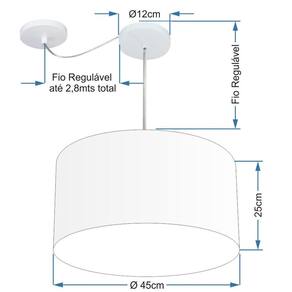 Lustre Pendente Cilíndrico Com Desvio de Centro Vivare Md-4236 Cúpula em Tecido 45x25cm - Bivolt - Cor: Branco | Voltagem: 127/220V