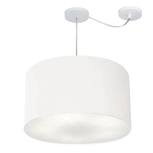 Lustre Pendente Cilíndrico Com Desvio De Centro Vivare Md-4239 Cúpula Em Tecido 45x30cm - Bivolt Branco 127/220v