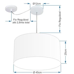 Lustre Pendente Cilíndrico Com Desvio Md-4228 Cúpula Tecido 45x25cm Algodão Crú