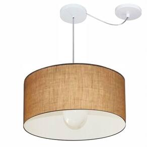 Lustre Pendente Cilíndrico Com Desvio Md-4230 Cúpula Em Tecido 50x25cm Palha - Bivolt