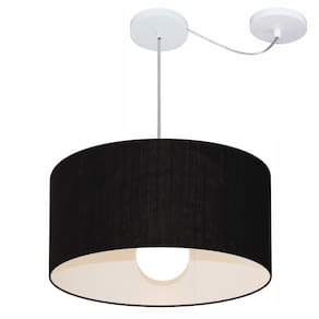 Lustre Pendente Cilíndrico Com Desvio Md-4230 Cúpula Tecido 50x25cm Preto
