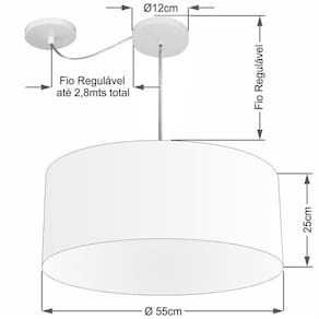 Pendente Com Desvio de Centro Indicado para decoração área interna, como mesas, sala de estar, sala de jantar, suite, quartos, corredor, hall, mezanino, escadas, churrasqueira, lareira, área de circulação, lojas, comércios, restaurante, varanda, balcão.DimensãoCúpula em Tecido: 55x25cm
