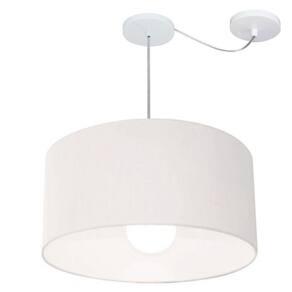 Lustre Pendente Cilíndrico Com Desvio Md-4233 Cúpula Em Tecido 55x30cm Branco - Bivolt