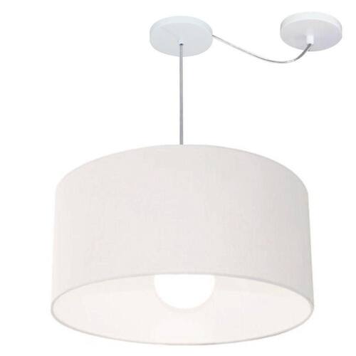 Lustre Pendente Cilíndrico Com Desvio Md-4233 Cúpula Tecido 55x30cm Branco