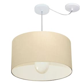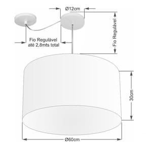 Pendente Com Desvio de Centro Indicado para decoração área interna, como mesas, sala de estar, sala de jantar, suite, quartos, corredor, hall, mezanino, escadas, churrasqueira, lareira, área de circulação, lojas, comércios, restaurante, varanda, balcão.DimensãoCúpula em Tecido: 60x30cm
