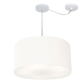 Lustre Pendente Cilíndrico Com Desvio Md-4236 Cúpula Tecido 45x25cm Branco