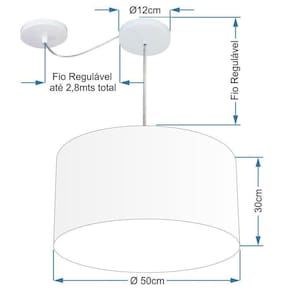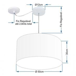 Pendente Com Desvio de Centro Indicado para decoração área interna, como mesas, sala de estar, sala de jantar, suite, quartos, corredor, hall, mezanino, escadas, churrasqueira, lareira, área de circulação, lojas, comércios, restaurante, varanda, balcão.DimensãoCúpula em Tecido: 50x30cm