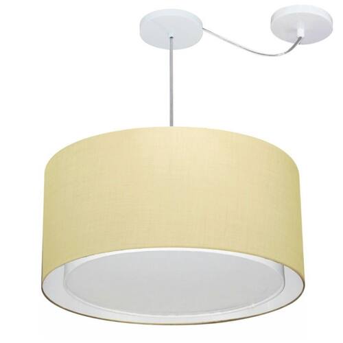 Lustre Pendente Cilíndrico Com Desvio Md-4315 Cúpula Tecido 50x30cm Algodão Crú