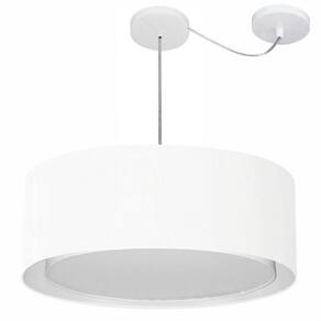 Lustre Pendente Cilíndrico Com Desvio Md-4317 Cúpula Tecido 60x25cm Branco