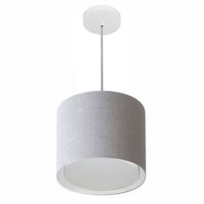 Lustre Pendente Cilíndrico Duplo Md-4284 Cúpula Tecido 30x30cm Rustico Cinza