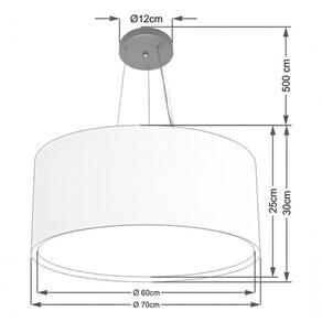 Pendente Moderno Indicado para decoração área interna, como mesas, sala de estar, sala de jantar, suite, quartos, corredor, hall, mezanino, escadas, churrasqueira, lareira, área de circulação, lojas, comércios, restaurante, varanda, balcão.DimensãoCúpula em Tecido: 70x30cm