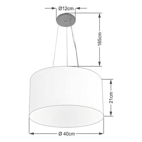 Pendente Moderno Indicado para decoração área interna, como mesas, sala de estar, sala de jantar, suíte, quartos, corredor, hall, mezanino, escadas, churrasqueira, lareira, área de circulação, lojas, comércios, restaurante, varanda, balcão.DimensãoCúpula em Tecido: 40x21cm