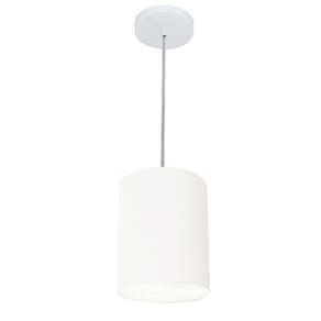 Lustre Pendente Cilíndrico Md-4012 Cúpula Tecido 18x25cm Branco