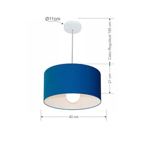 Lustre Pendente Cilíndrico Md-4031 Cúpula Tecido 40x21cm Azul Marinho