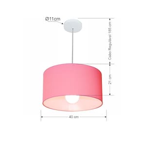 Lustre Pendente Cilíndrico Md-4031 Cúpula Tecido 40x21cm Rosa Bebê