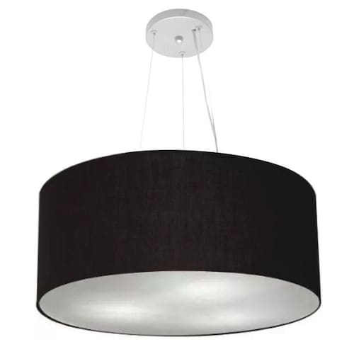 Pendente Moderno Indicado para decoração área interna, como mesas, sala de estar, sala de jantar, suíte, quartos, corredor, hall, mezanino, escadas, churrasqueira, lareira, área de circulação, lojas, comércios, restaurante, varanda, balcão.DimensãoCúpula em Tecido: 50x21cm