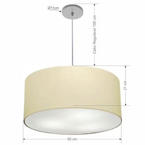Lustre Pendente Cilíndrico Md-4049 Cúpula Tecido 50x21cm Algodão Crú