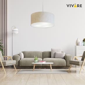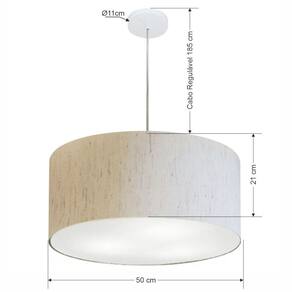 Lustre Pendente Cilíndrico Md-4049 Cúpula Tecido 50x21cm Linho Bege