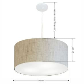 Lustre Pendente Cilíndrico Md-4049 Cúpula em Tecido 50x21cm Rustico Bege - Bivolt