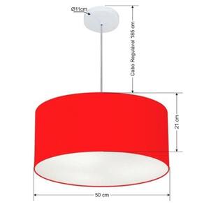 Pendente Moderno Indicado para decoração área interna, como mesas, sala de estar, sala de jantar, suíte, quartos, corredor, hall, mezanino, escadas, churrasqueira, lareira, área de circulação, lojas, comércios, restaurante, varanda, balcão.DimensãoCúpula em Tecido: 50x21cm