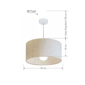 Lustre Pendente Cilíndrico Md-4069 Cúpula Tecido 50x30cm Linho Bege