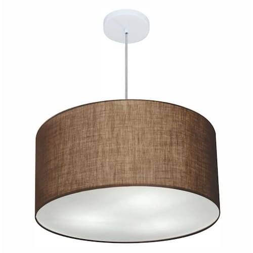 Lustre Pendente Cilíndrico Md-4080 Cúpula Tecido 60x30cm Café
