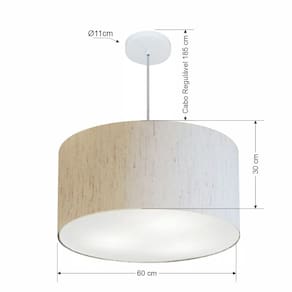 Lustre Pendente Cilíndrico Md-4080 Cúpula Tecido 60x30cm Linho Bege