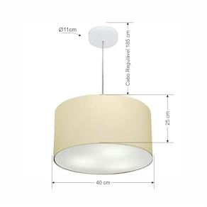Lustre Pendente Cilíndrico Md-4099 Cúpula em Tecido 40x25cm Algodão Crú - Bivolt