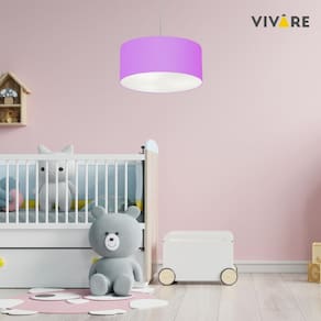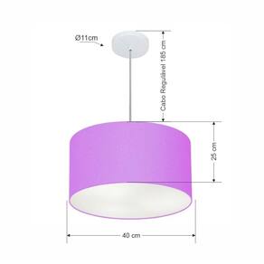 Lustre Pendente Cilíndrico Md-4099 Cúpula em Tecido 40x25cm Lilás - Bivolt