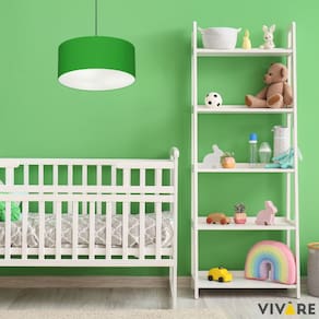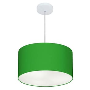 Lustre Pendente Cilíndrico Md-4099 Cúpula Tecido 40x25cm Verde Folha