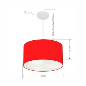 Lustre Pendente Cilíndrico Md-4099 Cúpula Tecido 40x25cm Vermelho