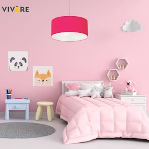 Lustre Pendente Cilíndrico Md-4100 Cúpula Tecido 50x25cm Rosa Pink