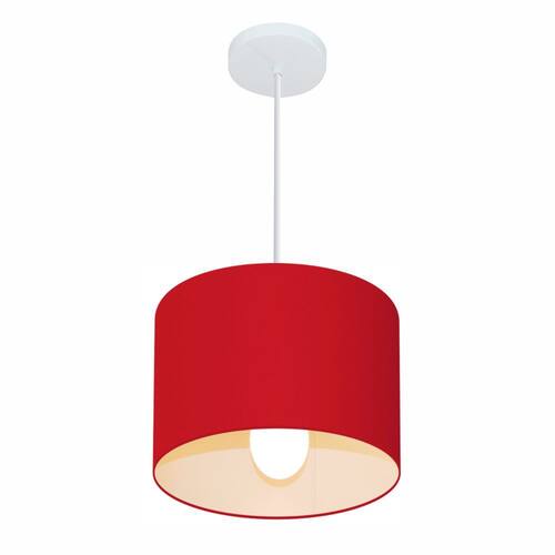 Lustre Pendente Cilíndrico Md-4113 Cúpula Tecido 30x25cm Bordo