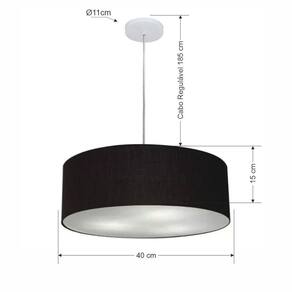Pendente Moderno Indicado para decoração área interna, como mesas, sala de estar, sala de jantar, suíte, quartos, corredor, hall, mezanino, escadas, churrasqueira, lareira, área de circulação, lojas, comércios, restaurante, varanda, balcão.DimensãoCúpula em Tecido: 40x15cm
